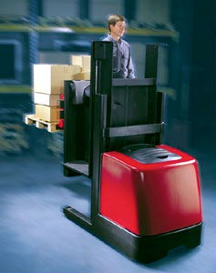 Montacargas eléctrico para pasillos angostos, ideal para incrementar la capacidad de almacenaje ya que puede colocar dos cargas de profundidad desde el mismo frente de posicionamiento de carga, este tipo de unidades trabajan en pasillos promedio de 103" (2.60m) dependiendo de la altura de estiba. Capacidades desde 1300 y hasta 2000kg.